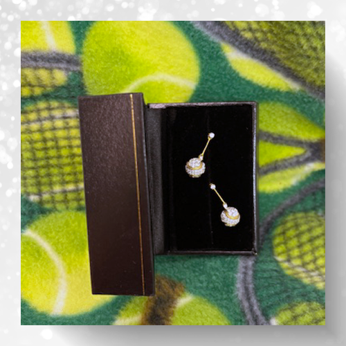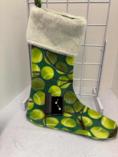 And on the last day of CuteTennisChristmas, we bring you the tiniest gift that shines the brightest... Our Crystal Tennis Ball earrings snuggled into a fleece tennis stocking, ready to be hung by your chimney with care. These beautiful earrings are no longer being made, so when these are gone... they are truly gone. Shipping will be upgraded to USPS Priority Mail at no additional charge.