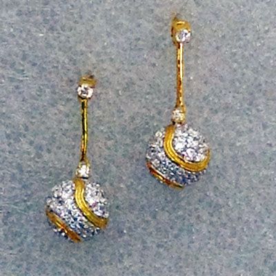 The tennis crystal ball earrings are 925 sterling silver with 2 tone seams of 18K micro-plated yellow gold. The beautiful sparkle, compliments of Swarovski crystals. Earrings dangle just about an inch.